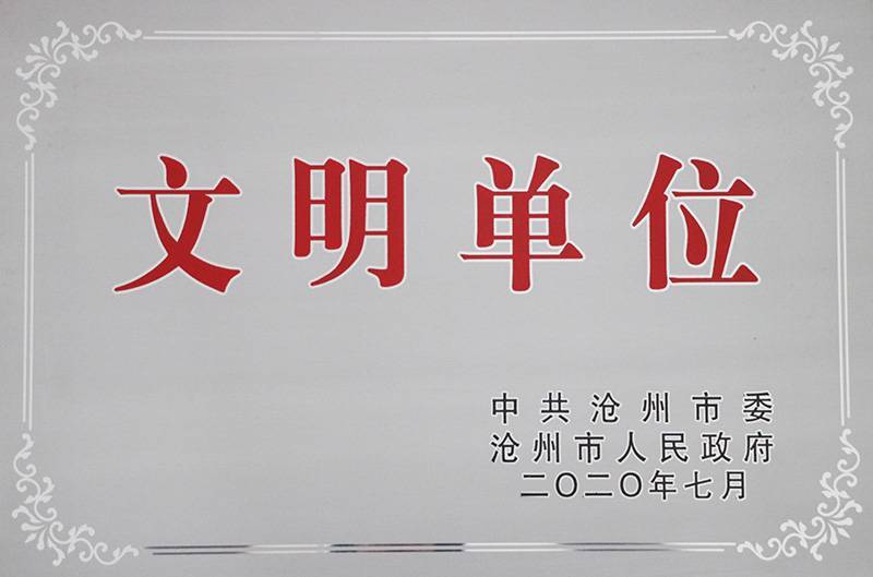 公司榮獲滄州市“市級(jí)文明單位”稱號(hào)