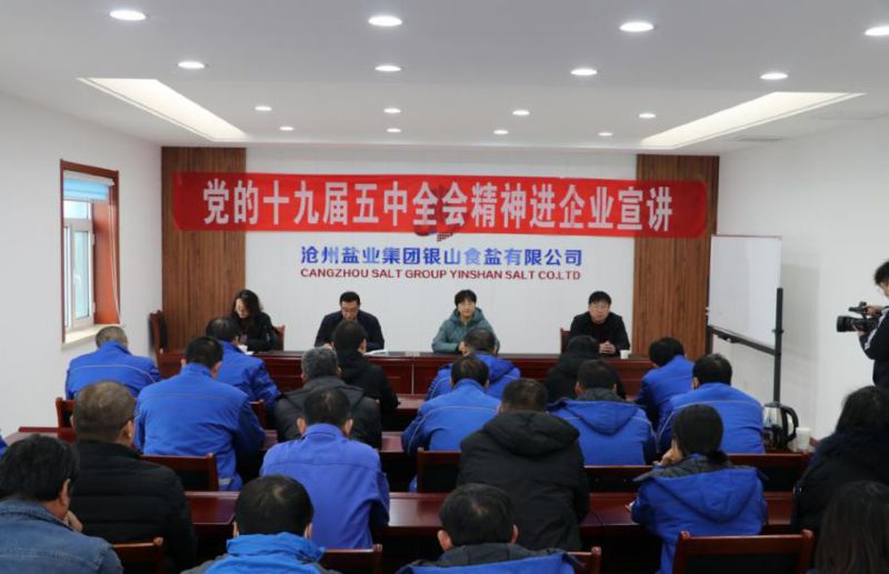 12月29日,黃驊市科技工信和商務局宣講團分別來到長蘆公司、銀山食鹽公司進行“黨的十九屆五中全會精神進企業(yè)宣講”活動,兩公司副科級以上管理人員、部分生產(chǎn)骨干參加了學習。