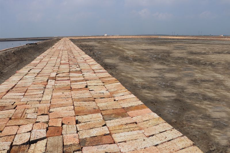 為了確保工程如期完工,長蘆公司全體干部職工放棄節(jié)假日休息,克服施工期間降雪、大風降溫等極寒天氣影響,加班加點、全力以赴趕進度,于2021年1月11日,順利完成了14個技改保鹵池共1184公畝的機械成埝,人工護磚工作。在施工期間,因環(huán)保要求,紅磚進場工作幾度停止。工貿公司積極協(xié)調供貨方,根據每個施工現(xiàn)場工程進度,合理調配用磚;生產部嚴把工程質量,加大巡查力度,發(fā)現(xiàn)問題及時解決;安全部對施工現(xiàn)場設備、人員及時進行檢查、培訓,確保了施工安全。