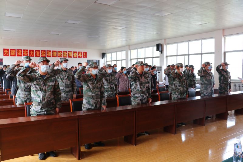 大會(huì)在雄壯的《中國(guó)人民解放軍軍歌》中拉開(kāi)序幕,曹建功宣讀了民兵干部任命。張富棚對(duì)參加點(diǎn)驗(yàn)的民兵進(jìn)行了身份核查,所有參加點(diǎn)驗(yàn)活動(dòng)的民兵舉手宣誓,展示了滄鹽集團(tuán)民兵隊(duì)伍良好的精神面貌。新入隊(duì)民兵代表進(jìn)行了表態(tài)發(fā)言。