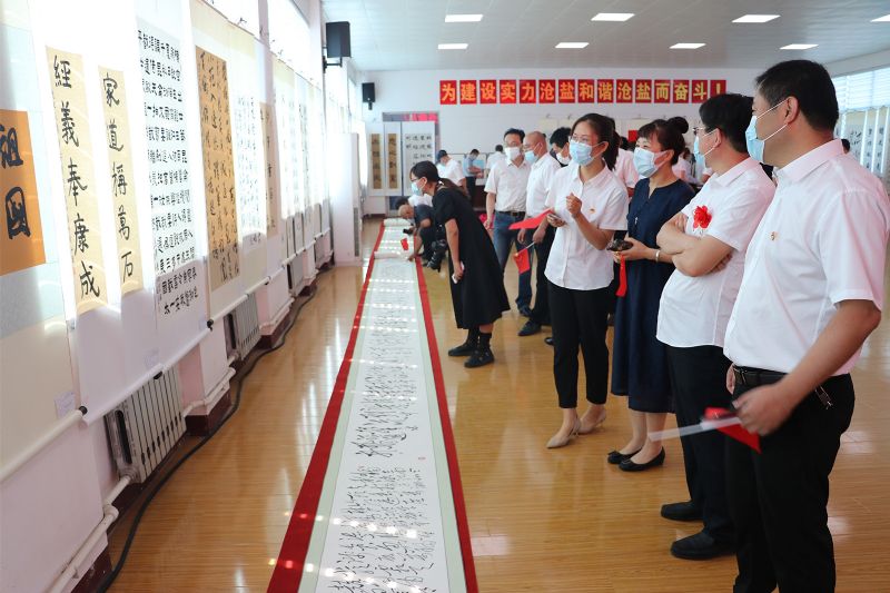 劉建軍表示,今天以書畫展的方式,歌頌黨的豐功偉績,傾吐黨的母親恩情,傳承紅色基因,激發(fā)創(chuàng)業(yè)熱情,不斷豐富發(fā)展滄鹽特色的企業(yè)文化,進一步引領(lǐng)方向、凈化心靈,激發(fā)斗志,凝聚力量,影響和帶動全體干部職工一心向黨、知黨恩、聽黨話、跟黨走,在各自的崗位上再創(chuàng)佳績、再立新功,必將對企業(yè)文化建設(shè)產(chǎn)生推波助瀾、事半功倍的效果。