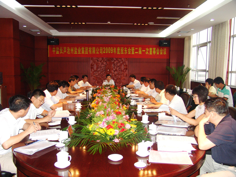 8月21日,公司召開(kāi)了2009年度股東會(huì)暨第二屆董事會(huì)第一次會(huì)議,中鹽總公司黨委書(shū)記杜茂華,滄州市國(guó)資委主任、黨委書(shū)記李任放,滄州市建設(shè)投資公司總經(jīng)理鄧文忠及公司董事、監(jiān)事共17人參加了會(huì)議。