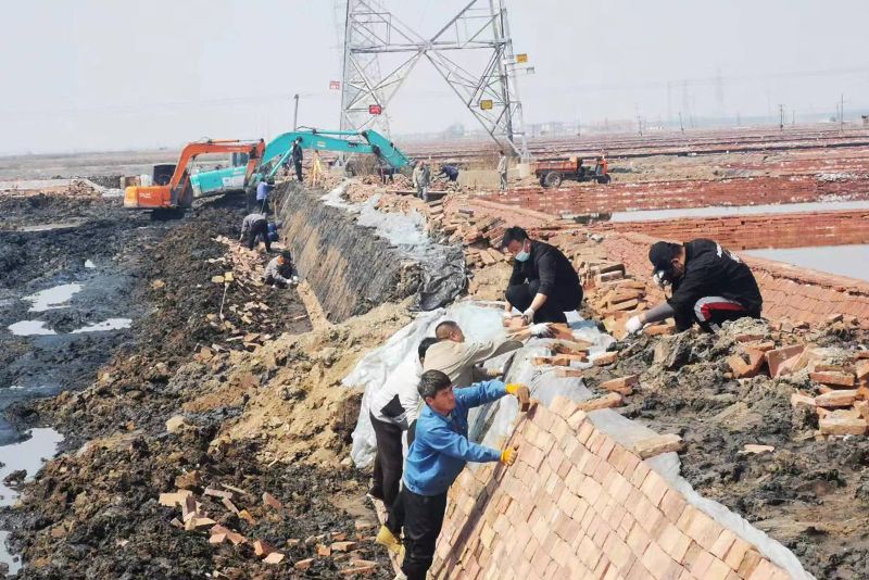 2022年4月8日,是渤海新區(qū)港城區(qū)結(jié)束疫情封控的第二天,物流公司承接的長蘆公司的保鹵圈技改工程也在這一天勝利竣工。物流公司全體人員看到又一項(xiàng)工程完工,黝黑的臉上綻放出勝利的笑容,工程也得到了長蘆公司各級部門的一致好評。為加快長蘆鹽業(yè)保鹵圈技改工程、保證鹵水正常調(diào)配,物流公司包括機(jī)關(guān)后勤人員在內(nèi)的全體人員自愿封控在場區(qū),全身心投入到長蘆公司灘田技改“會戰(zhàn)”中,經(jīng)過連續(xù)8天的努力,共砌磚6.5萬塊,如期完成了78號、80號灘保鹵圈技改任務(wù)。