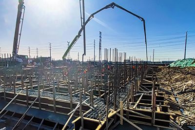 日前,該項目基礎鋼筋綁扎已順利通過驗收,基礎混凝土澆筑施工正在加快速度積極推進中。