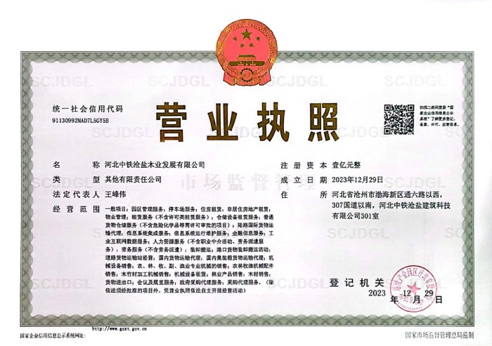 河北中鐵滄鹽木業(yè)發(fā)展有限公司注冊(cè)成立