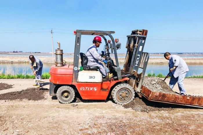 長蘆公司制鹵二工區(qū)第六泵站通往溴素有限公司溴素三廠的路段因強(qiáng)降雨沖刷,路面坑洼遍布、積水橫流,車輛、人員顛簸難行,既給職工上下班及原料運(yùn)輸帶來極大不便,也埋下了安全隱患。群眾所盼,行動(dòng)所向。7月18日,溴素三廠10余名黨員干部及骨干組建了突擊隊(duì),備齊鐵鍬、砂石料、叉車等工具設(shè)備,對(duì)該路段進(jìn)了修補(bǔ)。