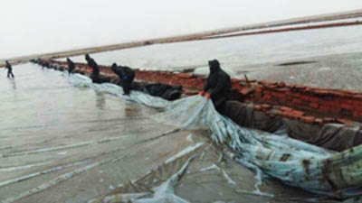 22日上午,副總經(jīng)理李蜻海根據(jù)大雪漸弱、溫度繼續(xù)下降、風(fēng)力再度加強(qiáng)的天氣實(shí)況,緊急組織召開會(huì)議,果斷決策:一是根據(jù)后步大風(fēng)降溫的趨勢,今日寒流前全部回收塑苫。二是回收過程中塑膜淡水要片凈,操作要嚴(yán)細(xì),確保塑膜完好。三是生產(chǎn)部、制鹽場各級(jí)管理人員要做好現(xiàn)場的指揮檢查。在收塑過程中,全體職工嚴(yán)細(xì)把握每一步操作要領(lǐng),在冰冷刺骨的鹵水中,手倒、木杠撬,防止人為造成塑膜損傷,至下午3時(shí),終于使全公司塑苫池完整回位,并及時(shí)用人工的方式對(duì)塑苫上的冰塊進(jìn)行了清除,全部進(jìn)行了苫封,做好防風(fēng)防凍措施。