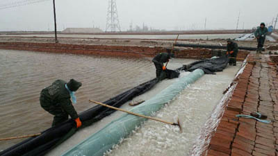 20日上午,各生產(chǎn)單元利用氣溫較高時(shí)段對(duì)全公司3.3萬多公畝塑苫池和1200余公畝保鹵圈全部進(jìn)行了苫蓋,并重點(diǎn)做好防風(fēng)措施。20日晚,氣溫驟降,風(fēng)雨交加,副總經(jīng)理李蜻海及生產(chǎn)部、各制鹽場班子成員多次往返于受災(zāi)現(xiàn)場,查看災(zāi)情,制定相應(yīng)的生產(chǎn)措施。一線職工顧不得天寒地滑,頂風(fēng)冒雨堅(jiān)守在灘田,及時(shí)片淡排淡,巡邏防風(fēng),排除了一個(gè)又一個(gè)險(xiǎn)情。21日夜間,狂嘯的大風(fēng)夾裹著雪花肆虐而至,最大風(fēng)力達(dá)到了7到8級(jí),為確保措施萬無一失,各制鹽場采取定人定池的方法堅(jiān)守在塑苫池旁巡視值班。職工們頂著-1℃的低溫,認(rèn)真檢查、封壓塑苫,有的職工衣服淋透結(jié)了冰,凍得瑟瑟發(fā)抖,但沒有一個(gè)退縮;有的手指失去了知覺,就哈哈氣、搓搓手接著干,此時(shí)此刻,職工們拼的不僅僅是體力,拼的更是毅力和決心。在職工們的共同努力下,保證了全公司塑膜無一處因大風(fēng)損壞而損失鹽鹵。