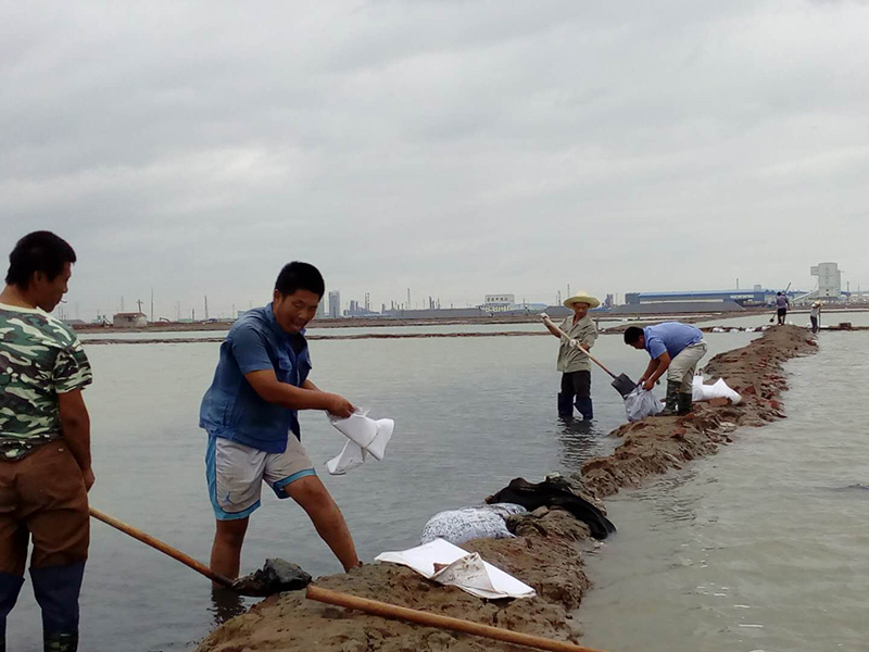 災(zāi)情發(fā)生后,公司立即啟動防汛應(yīng)急預(yù)案,迅速組織干部職工開展生產(chǎn)自救,積極做好救災(zāi)抗災(zāi)工作,確保公司財產(chǎn)、人員安全。整個防汛抗災(zāi)過程中,一線干部職工發(fā)揚“戰(zhàn)天斗地”的滄鹽精神,眾志成城、嚴防死守、抗災(zāi)搶險,采取外堵(堵住外圍水不進場區(qū))、下疏(重新開通入海泄洪口3處)、內(nèi)保(保住駁鹽溝、導(dǎo)水路護灘埝不決口)的有效措施,先后排除各類險情245處,最終奪取了抗災(zāi)保產(chǎn)的階段性勝利。