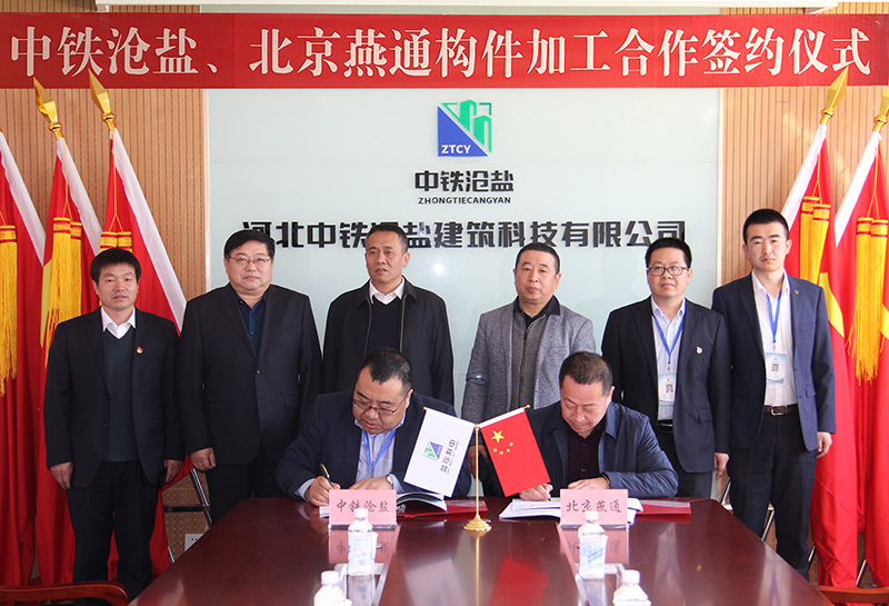 河北中鐵滄鹽建筑科技有限公司與北京燕通構(gòu)件有限公司舉行構(gòu)件加工合作簽約儀式
