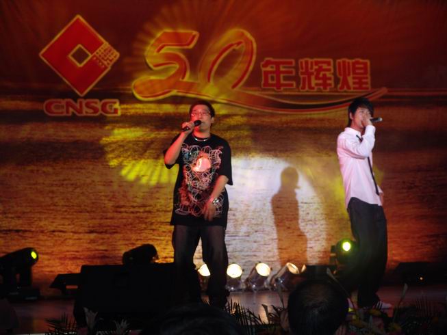 中鹽總公司副總經(jīng)理萬(wàn)建軍(右)即興演唱
